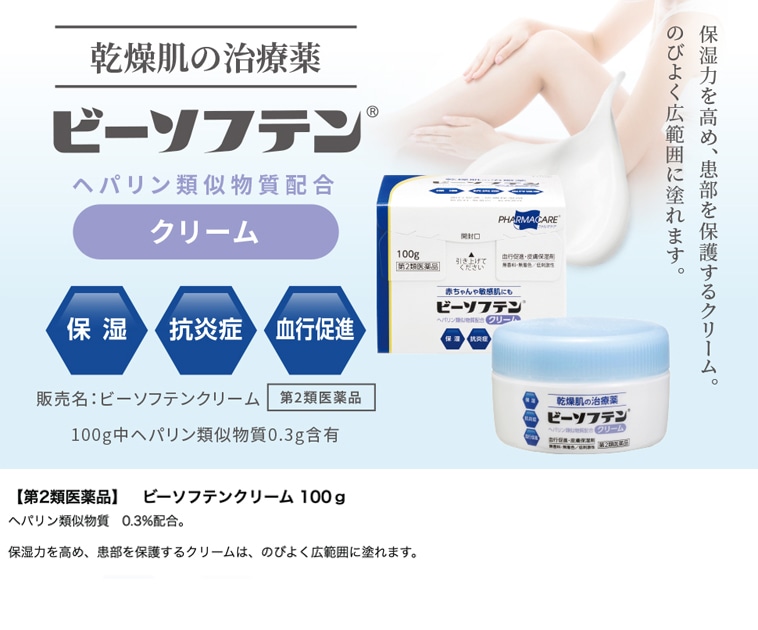 手指の荒れ、ひじ・ひざ・かかと・くるぶしの角化症、手足のひび・あかぎれ、乾皮症、小児の乾燥性皮ふ、しもやけ(ただれを除く)、きず・やけどあとの皮ふのしこり・つっぱり(顔面を除く)、打身・ねんざ後のはれ・筋肉痛・関節痛