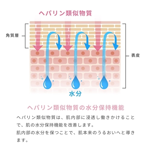 A.血液の凝固を妨げたりする目的で用いられる「ヘパリン」と同様の作用を持つ成分で、水分子を引き寄せて保持する特性を持ちます。保湿作用、血行促進作用、抗炎症作用などの効果を持っており、皮膚で水分を保持させることで、保湿効果が持続されるとされています。